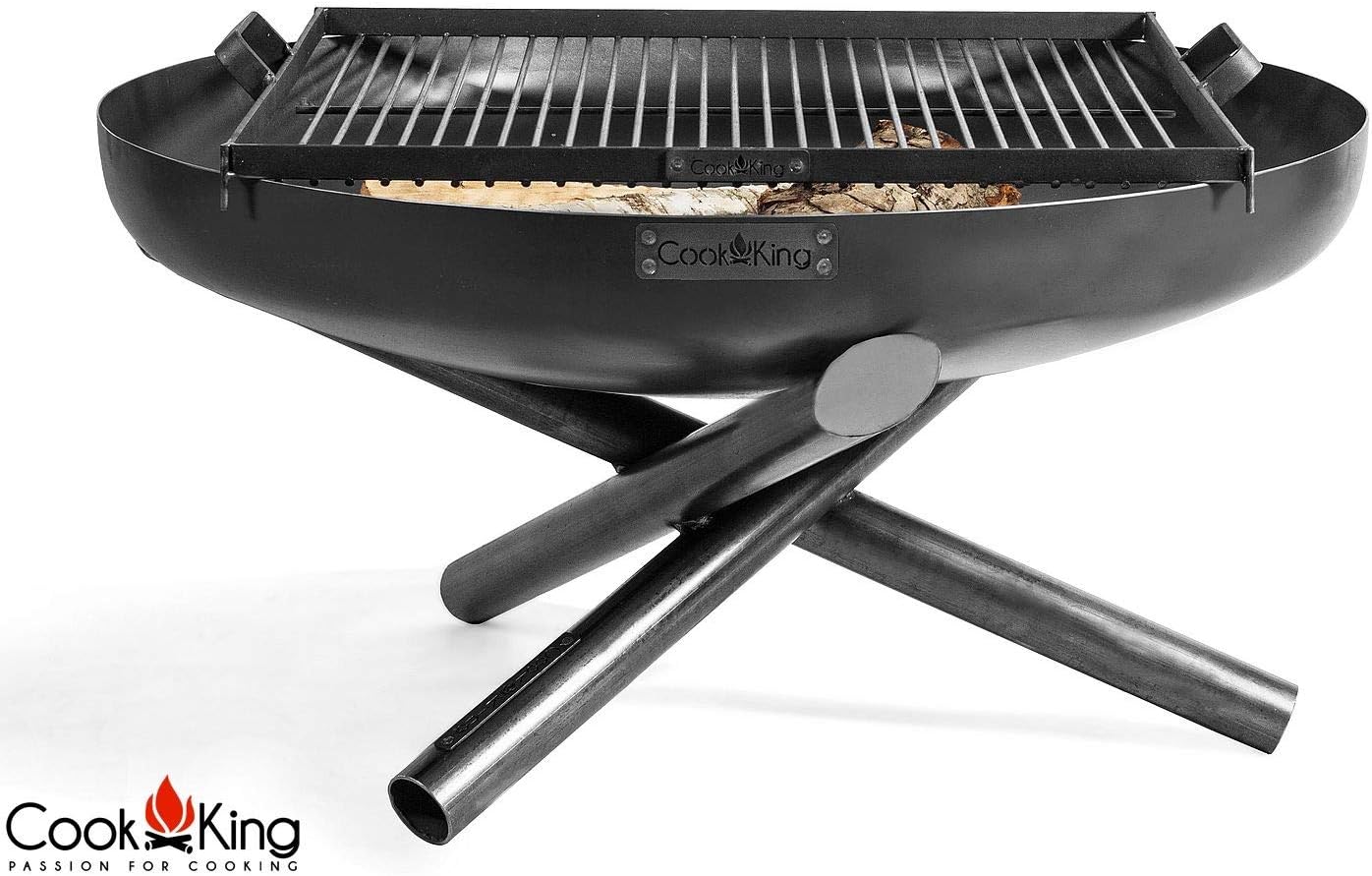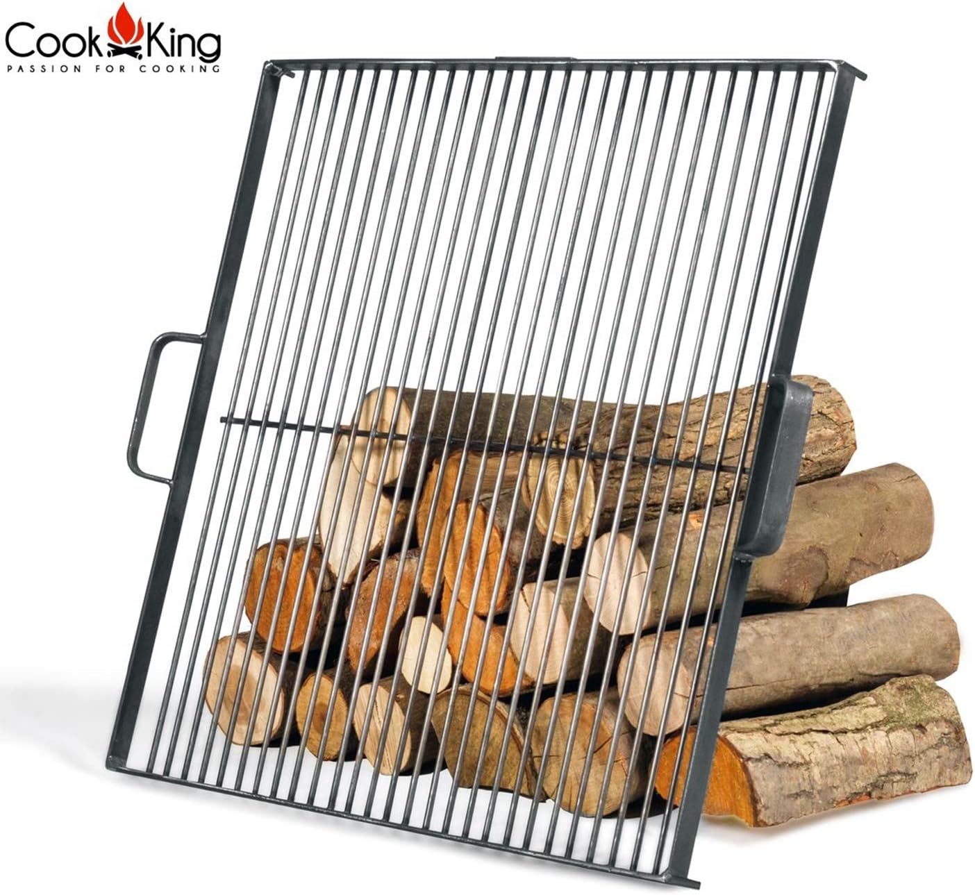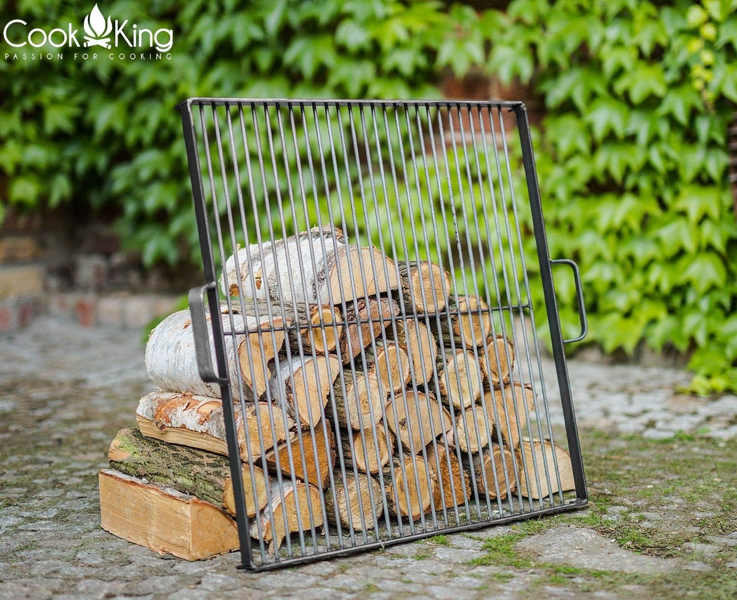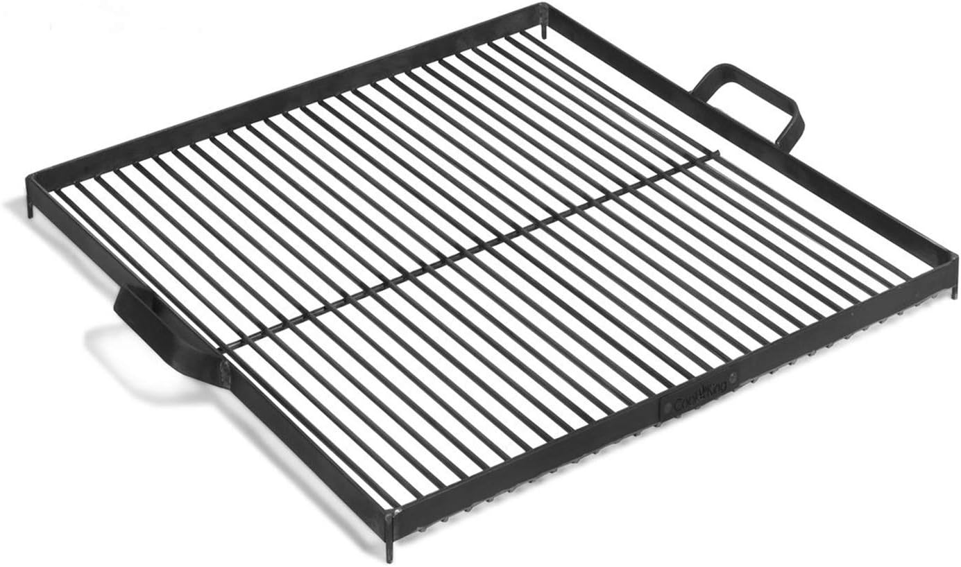 Dieser Rost mit einer großen Grillfläche wurde aus haltbarem, hochtemperaturbeständigem, schwarzem Stahl gefertigt. Der quadratische Rost hat zwei angepasste Griffe, die dessen Tragen vereinfachen. Die Hauptfunktion dieses Rostes besteht darin, dass er auf eine Feuerschale der Firma Cook King gestellt werden kann, ohne dass ein Dreibein nötig ist.