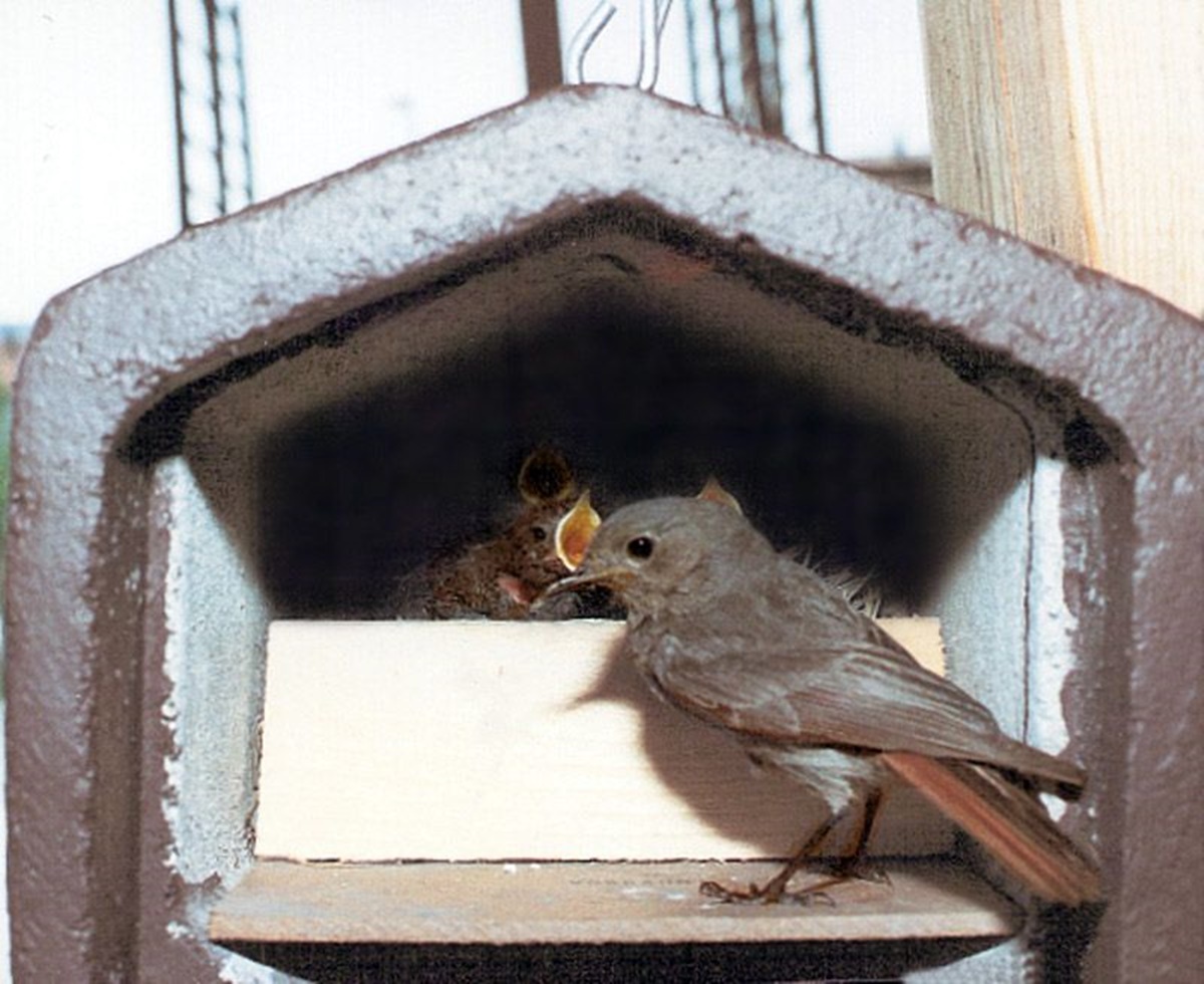 Bewohner: Hausrotschwanz, Bachstelze, Grauschnäpper; selten Rotkelchen, Zaunkönig. Aufhängeplatz: Anbringung an Fassaden von Häusern, Scheunen, Gartenhäuschen etc, aber auch frei an Bäumen durch speziellen, vorgezogenen Vorbau.