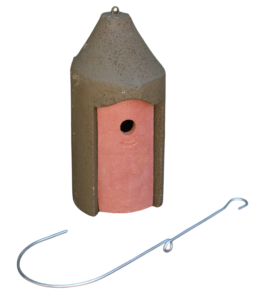 Bewohner: Kohl-, Blau-, Tannen-, Haubenmeise, Gartenrotschwanz, Kleiber, Halsband- und Trauerschnäpper, Wendehals, Feld- und Haussperling, auch Fledermäuse. Aufhängeplatz: auf Bäumen, mit mitgelieferter Aufhängung.