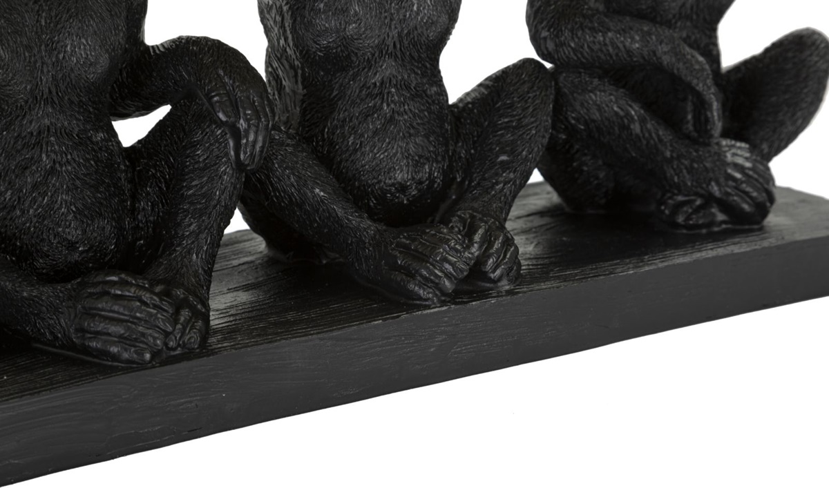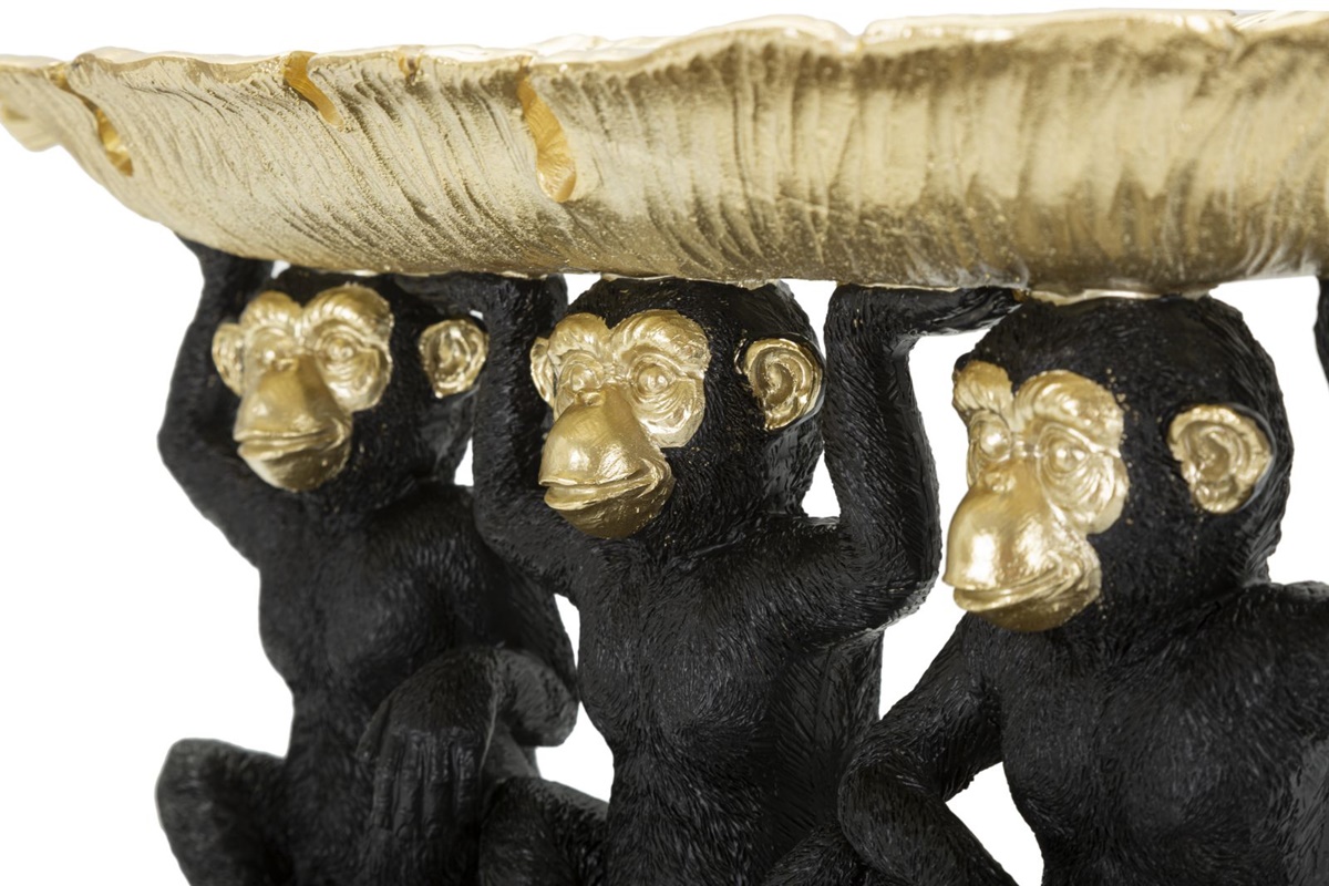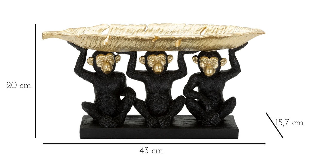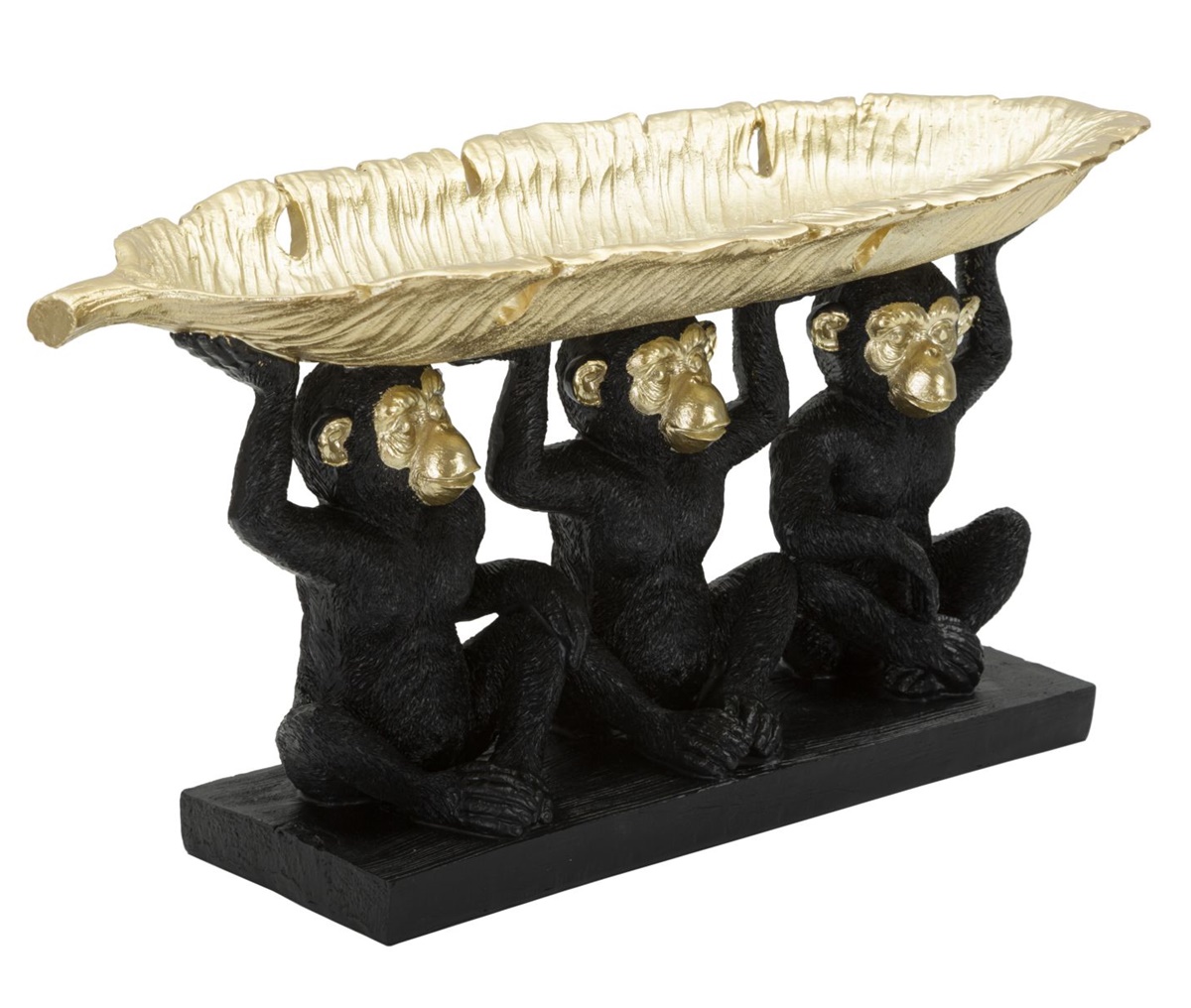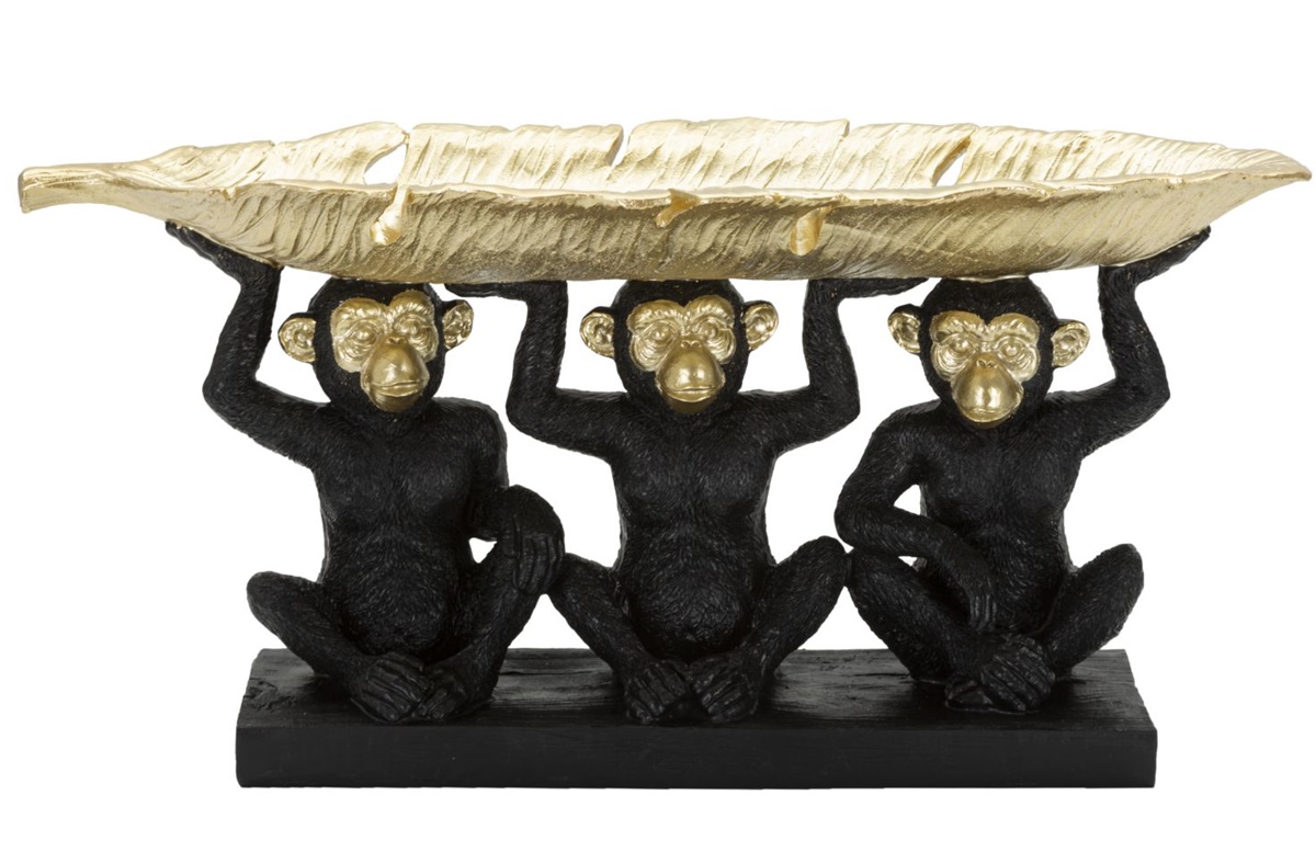 Dekofigur 3 Affen Schimpansen sitzend nebeneinander mit goldener Schale über den Köpfen H 20 cm