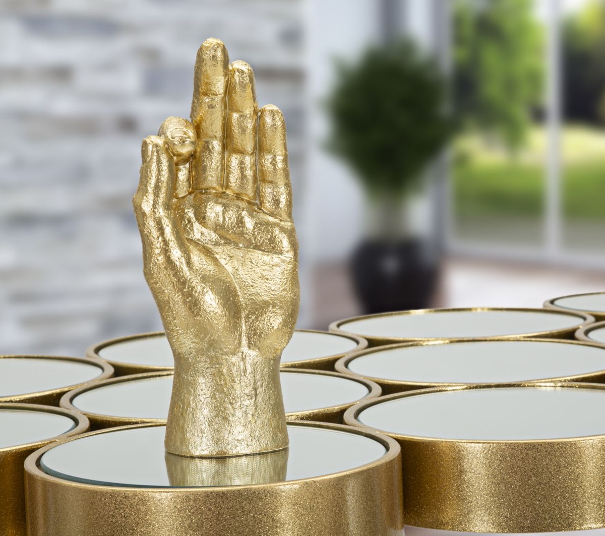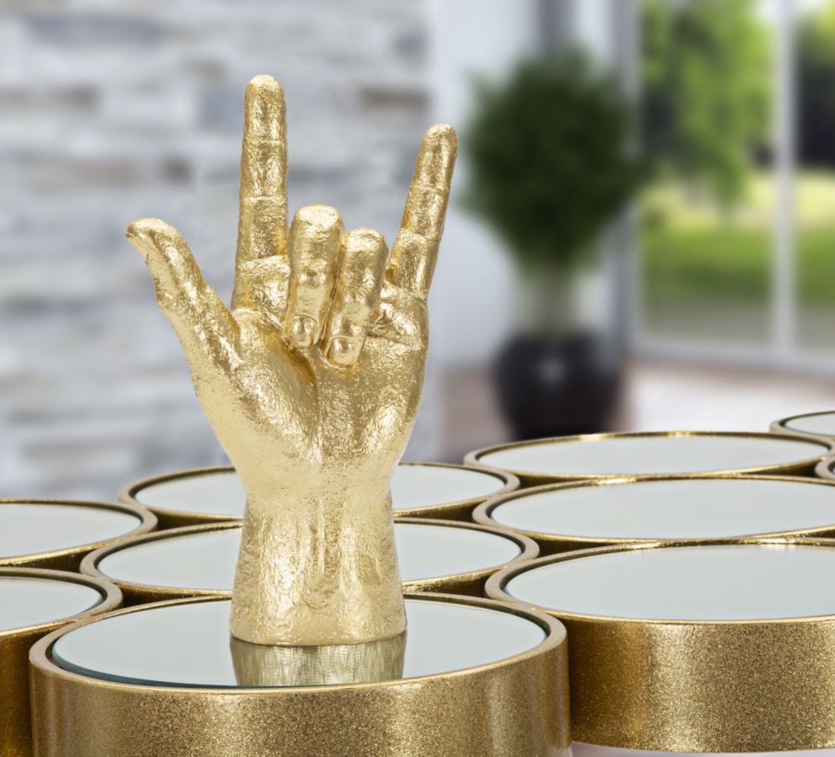 Produkt: Deko Skulpturen 2-er Satz Handzeichen Mano OK für Alles in Ordnung und Mano Yeah für positive Begeisterung Zugehörigkeit in edler Goldoptik. Diese Handzeichen bedeuten in westlichen positive Gefühle und Einstellungen.
