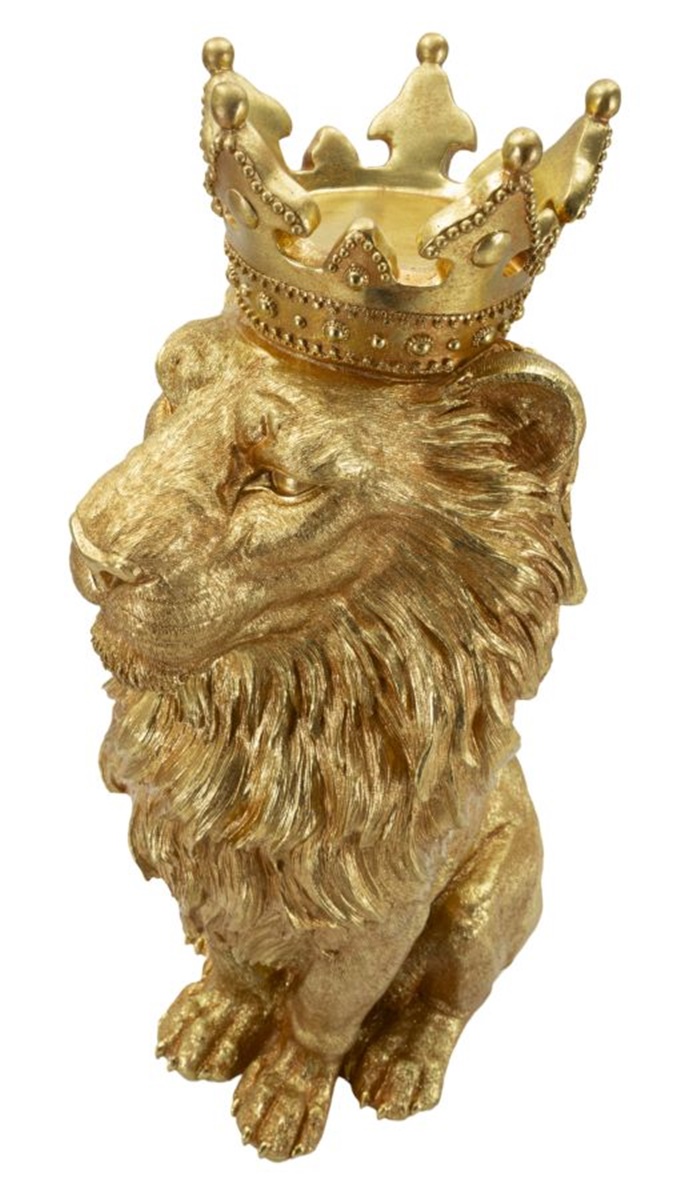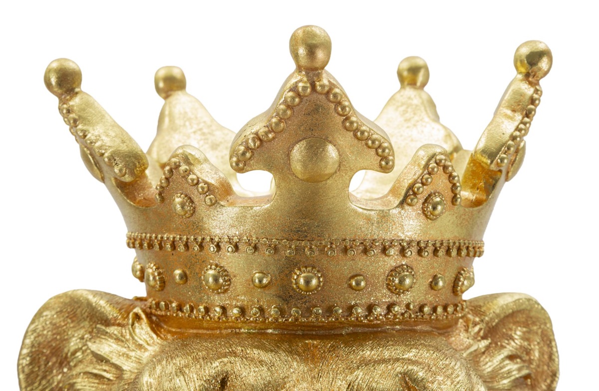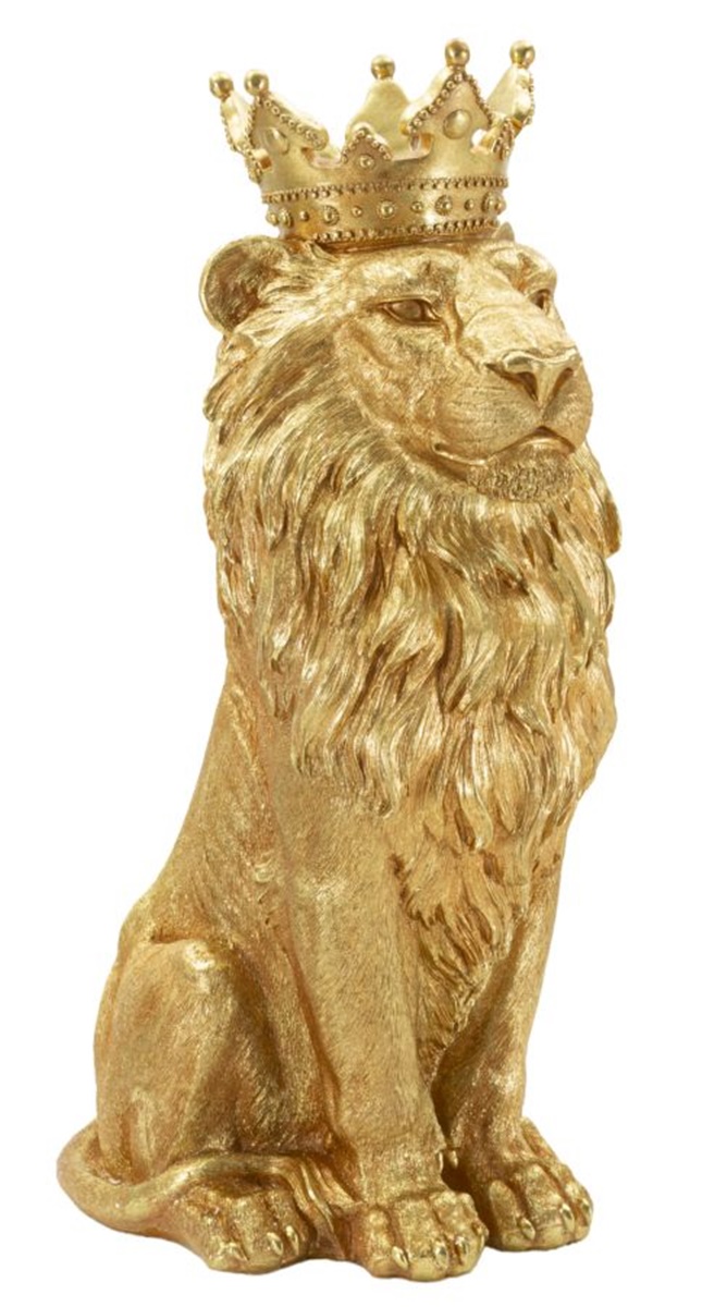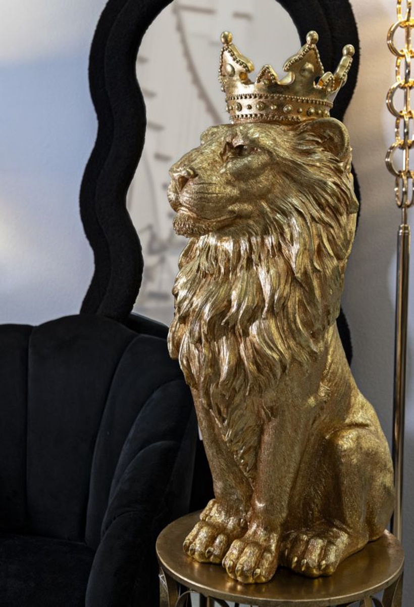 Dekofigur Löwe mit Krone sitzend Tierfigur Skulptur stolzer Löwenkönig Shanti in edlem Gold H 74 cm