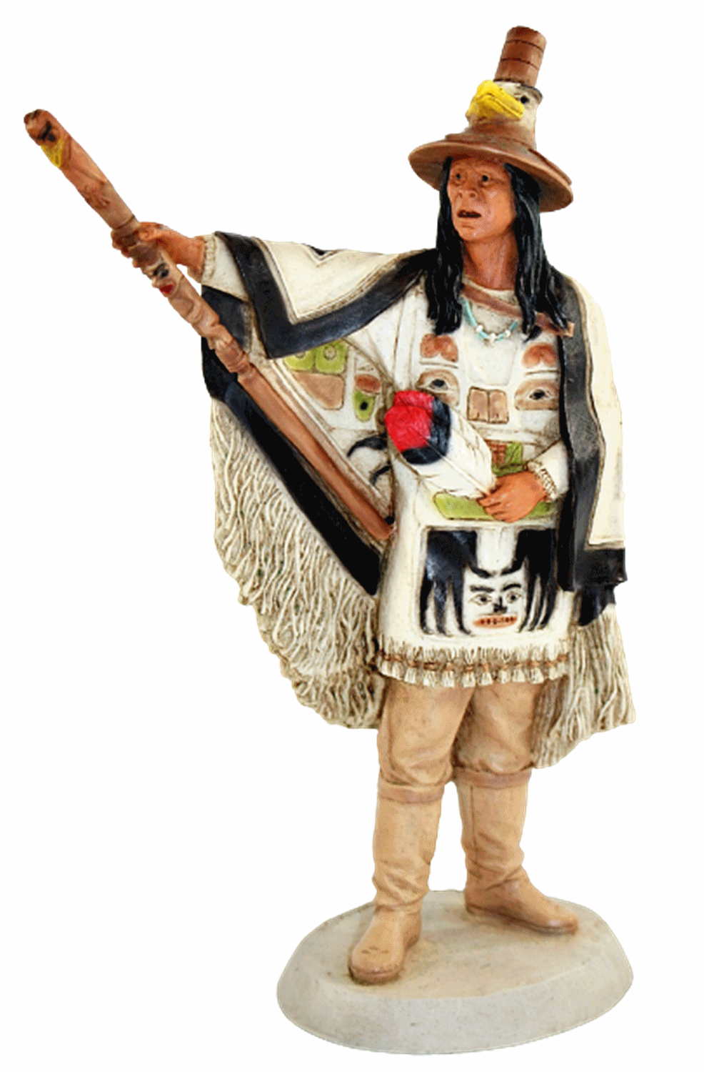 Das durchsichtige Material ermöglicht hervorragend künstlerische Bemalung dieser hochwertigen Figuren. Das Material der Indianerskulpturen zeichnet sich durch massive Struktur aus.Die erfahrensten Handwerker trocken und verarbeiten die Form; danach bemalen Künstler die Skulpturen mit größter Sorgfalt.
