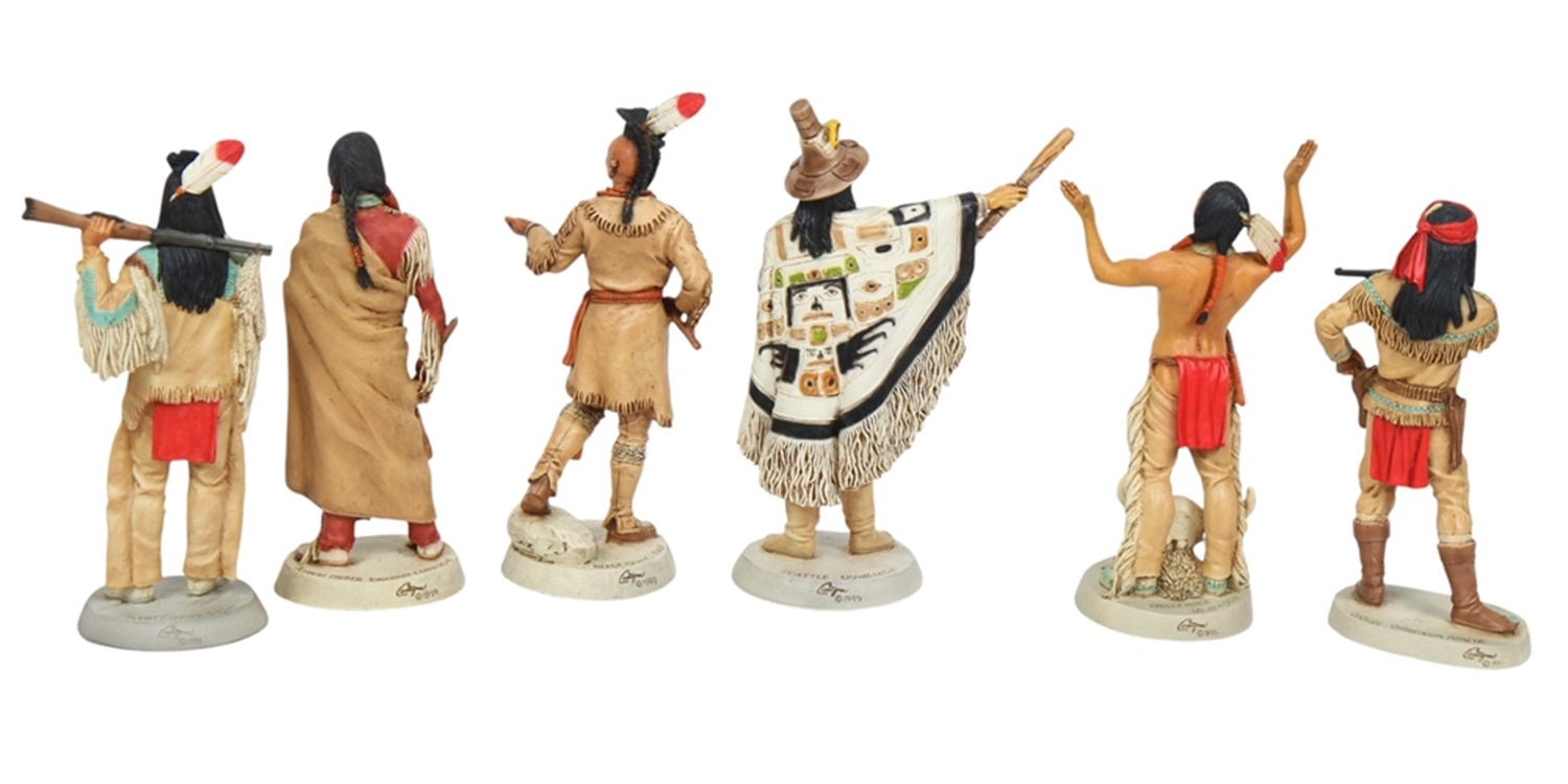 Produkt: Dekofiguren Indianerfiguren Indianer Häuptlinge Anführer Cochise, Crazy Horse, Quanah Parker, Plenty Coups, Balck Hawk und Seattle stehend 6-er Satz komplette Indianer Gruppe von Castagna Kollektion