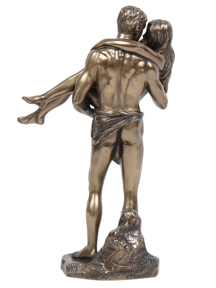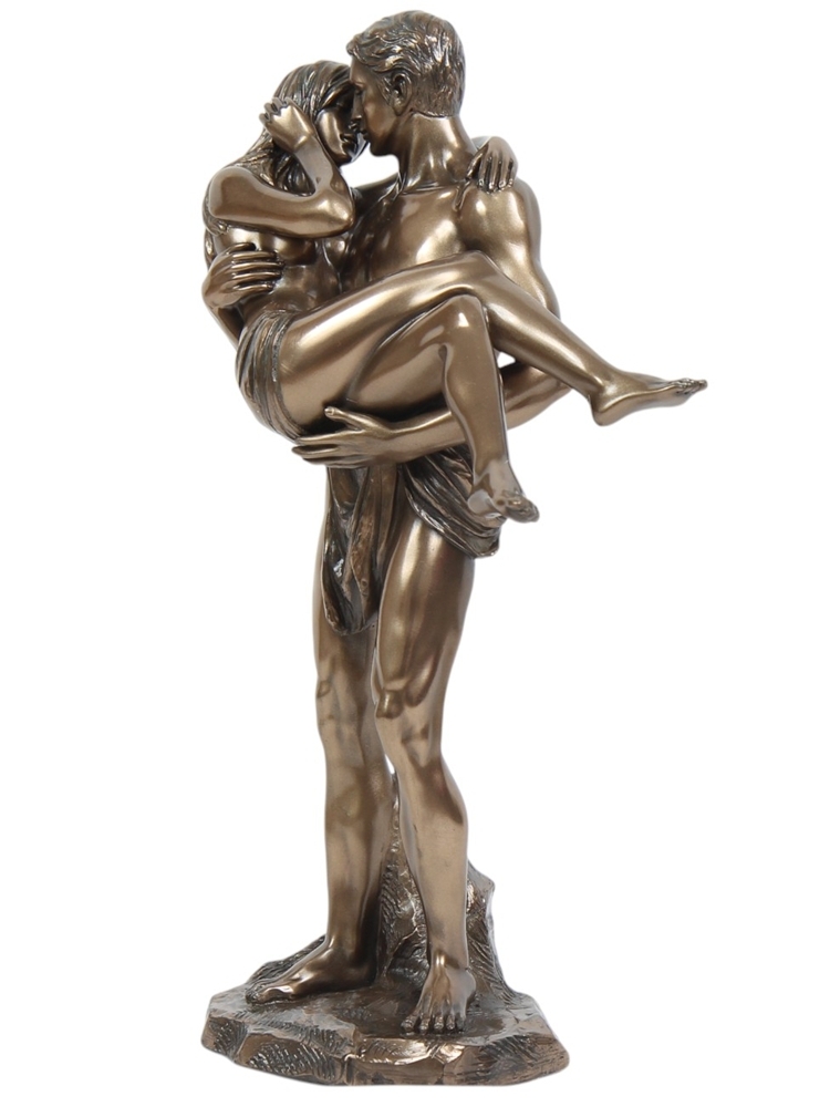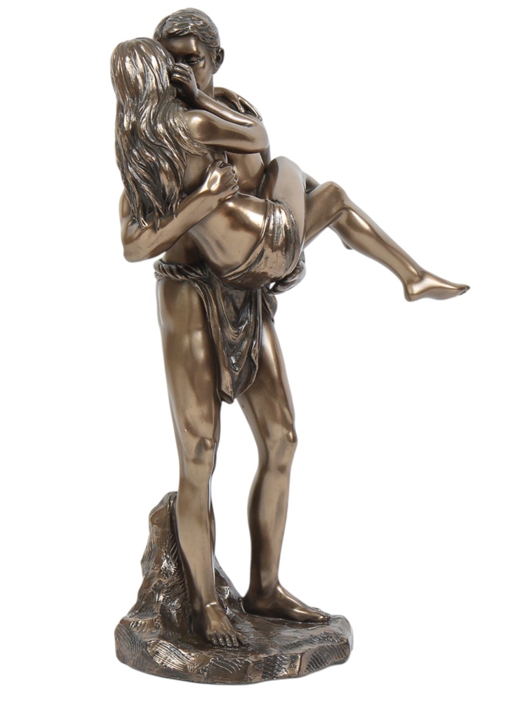 Die kunstvolle Figur aus der Body-Talk-Kollektion zeigt ein inniges Liebespaar in einem besonders romatischem Moment: Ein Mann hält seine Partnerin behutsam in den Armen und trägt sie mit spürbarer Hingabe. Die bronzefarbende Skulptur ist fein ausgearbeitet und betont die anmutige Linien der beiden Körper, wodurch eine harmonische Mischung aus Eleganz und Emotion entsteht.